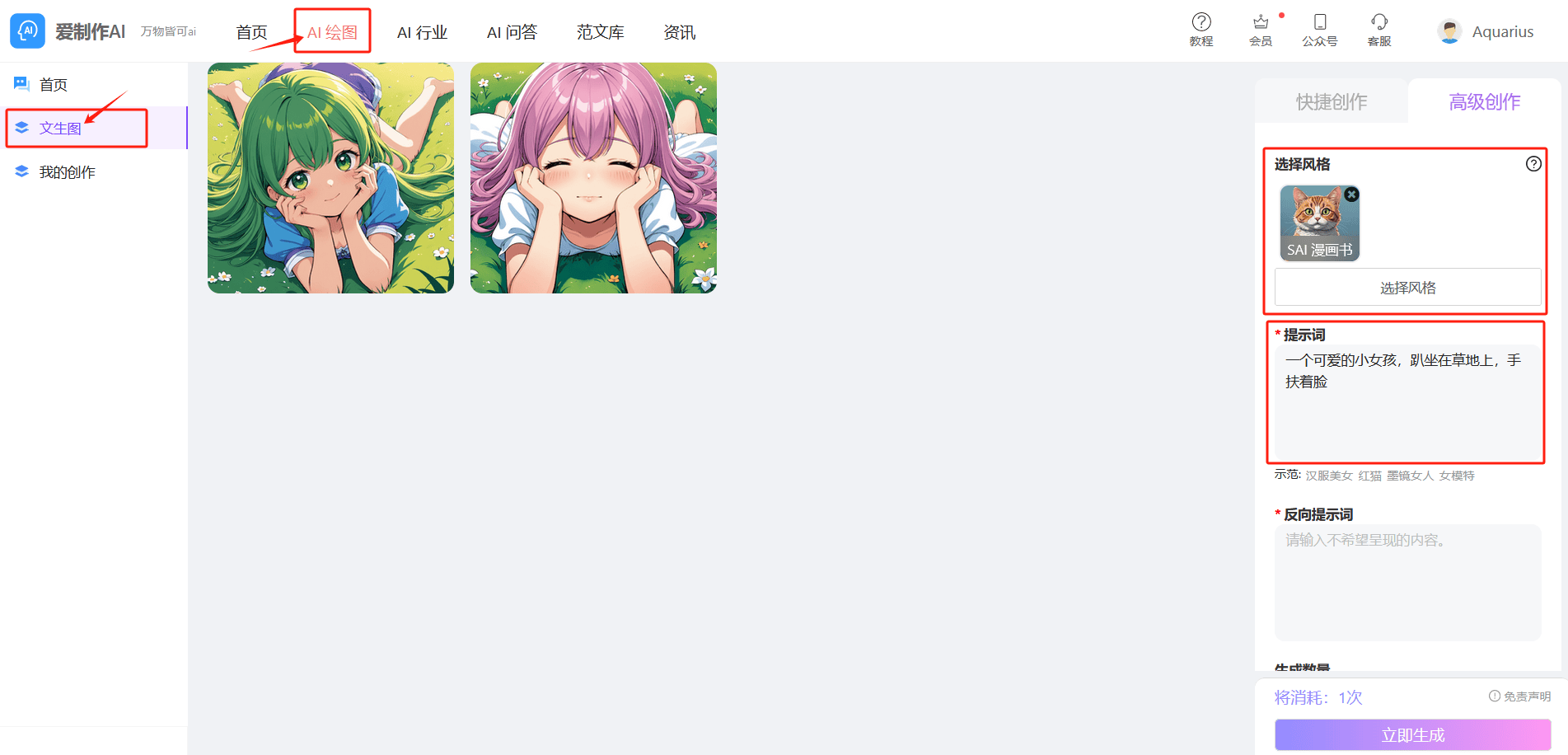正在左边的对话框内输入提醒词:如一个可爱的小女孩,我们能够选择本人喜好的图片格式气概,能够将里面的成果下载为图片文件,