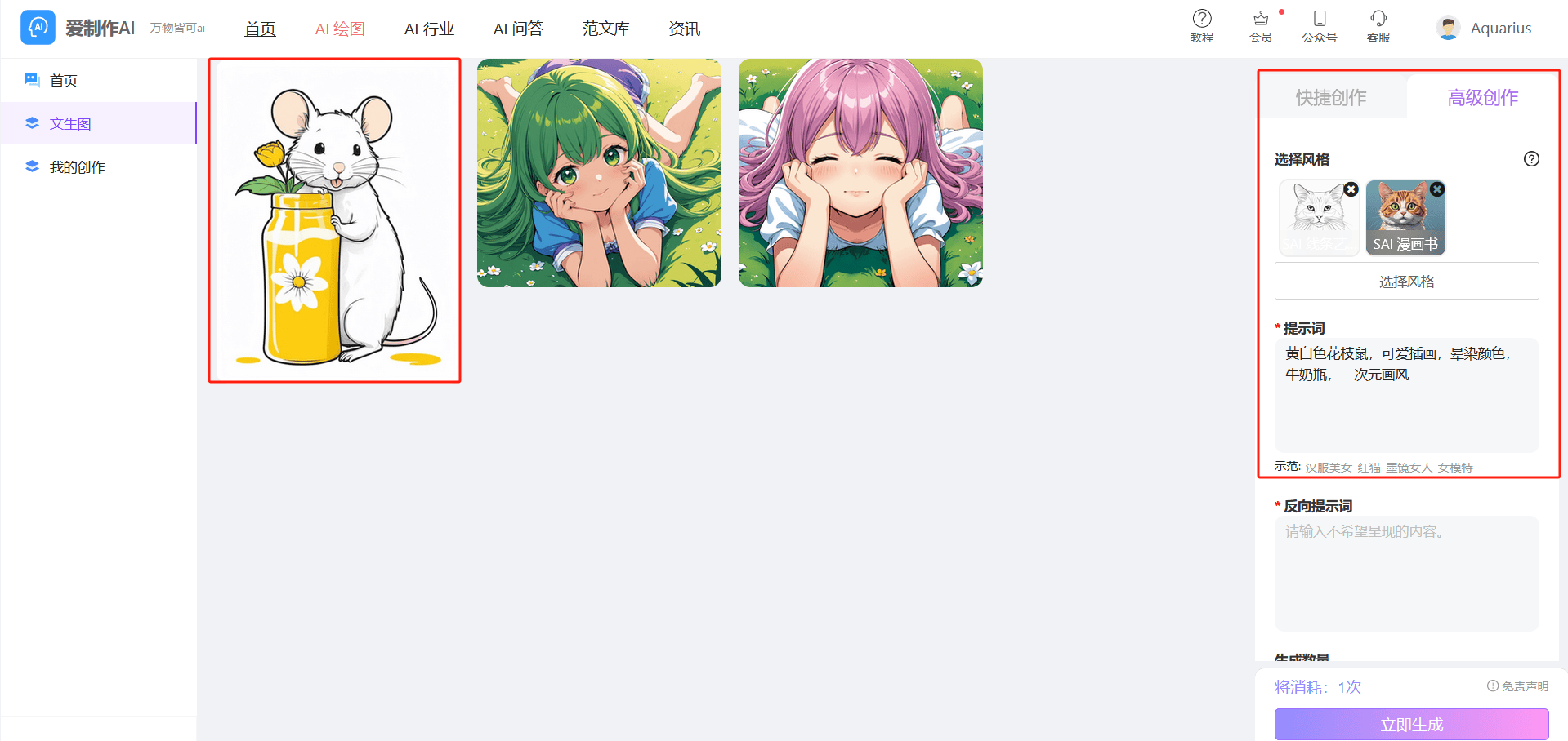 里面展现了上万种图片,AI画图是一个简单便利的选择。能够从动生成各类气概的艺术做品。跟着人工智能(AI)手艺的不竭成长,点击图片上方的【创做同款】按钮,保留到当地再进行利用。对于那些没有绘画根本或者想要测验考试新的创做体例的人来说,